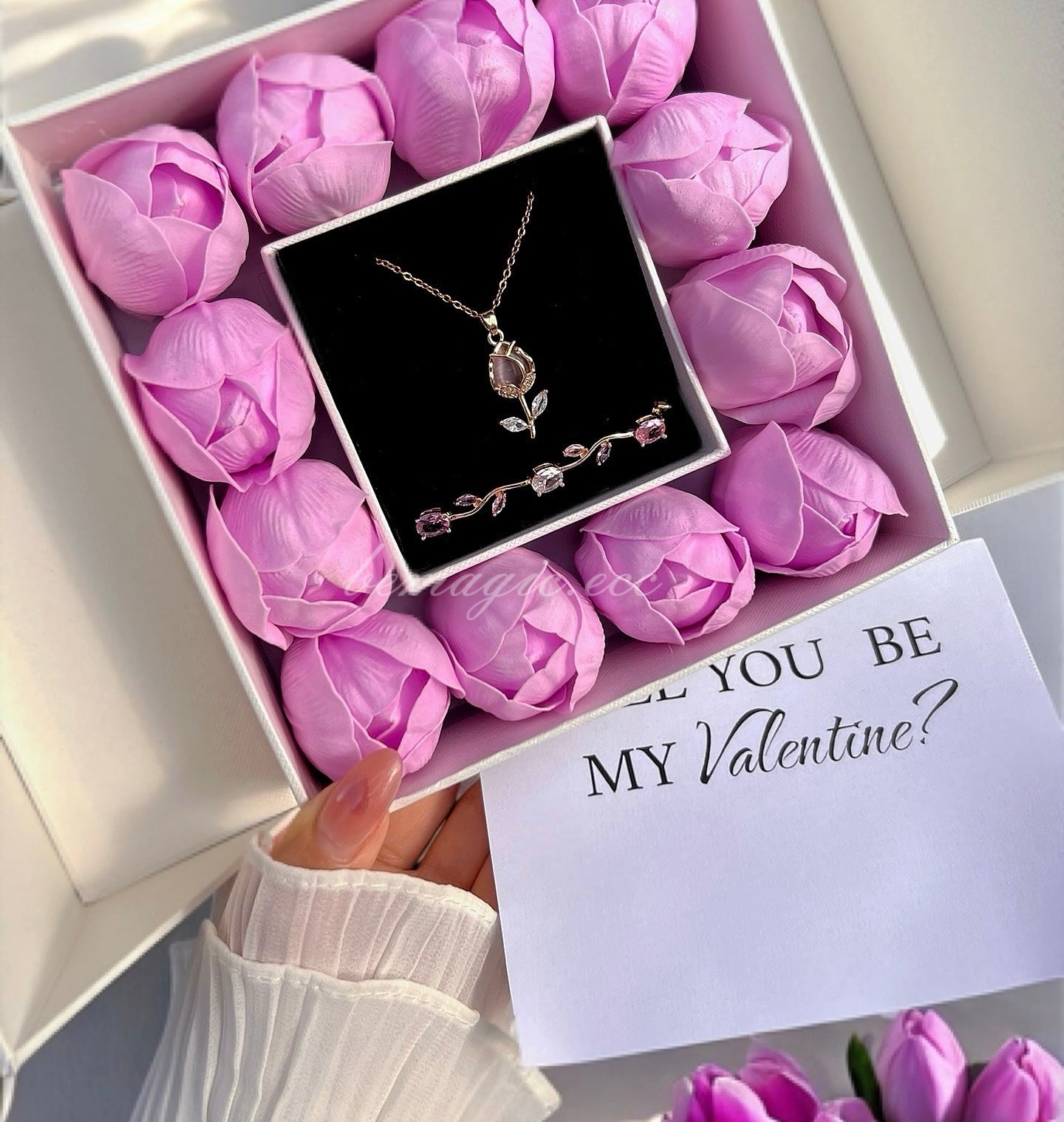 Tulips for Valentines 🌷 Set Rosado y Plateado