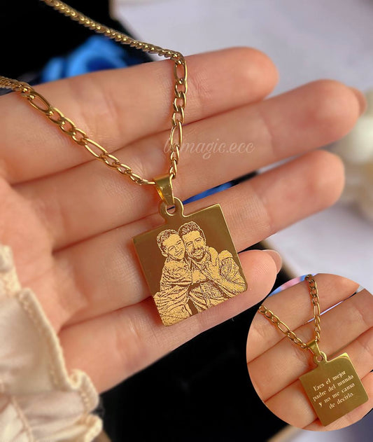Cadena "Mi Grado" Rectangular Dorado/Plateado 20x40mm
