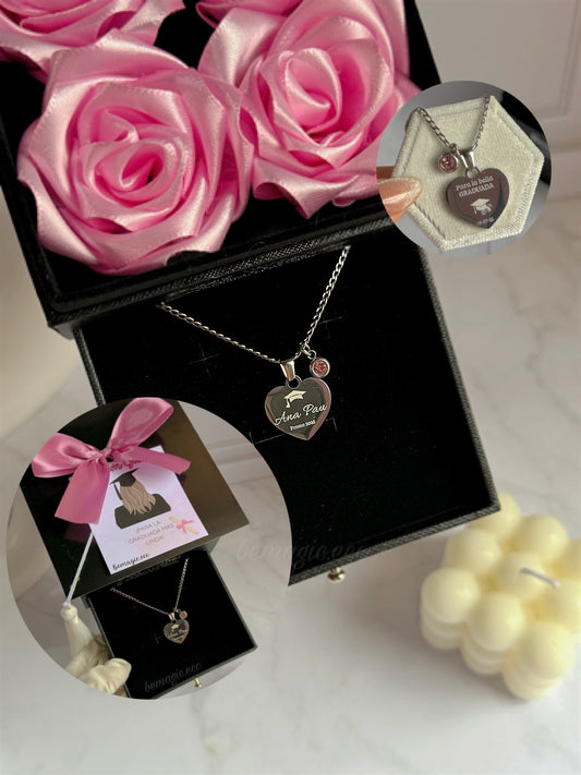 Dreamer Girl Box 💜🎀 👩🏻🎓 Collar fotograbado Graduada – Edición Cofre de rosas