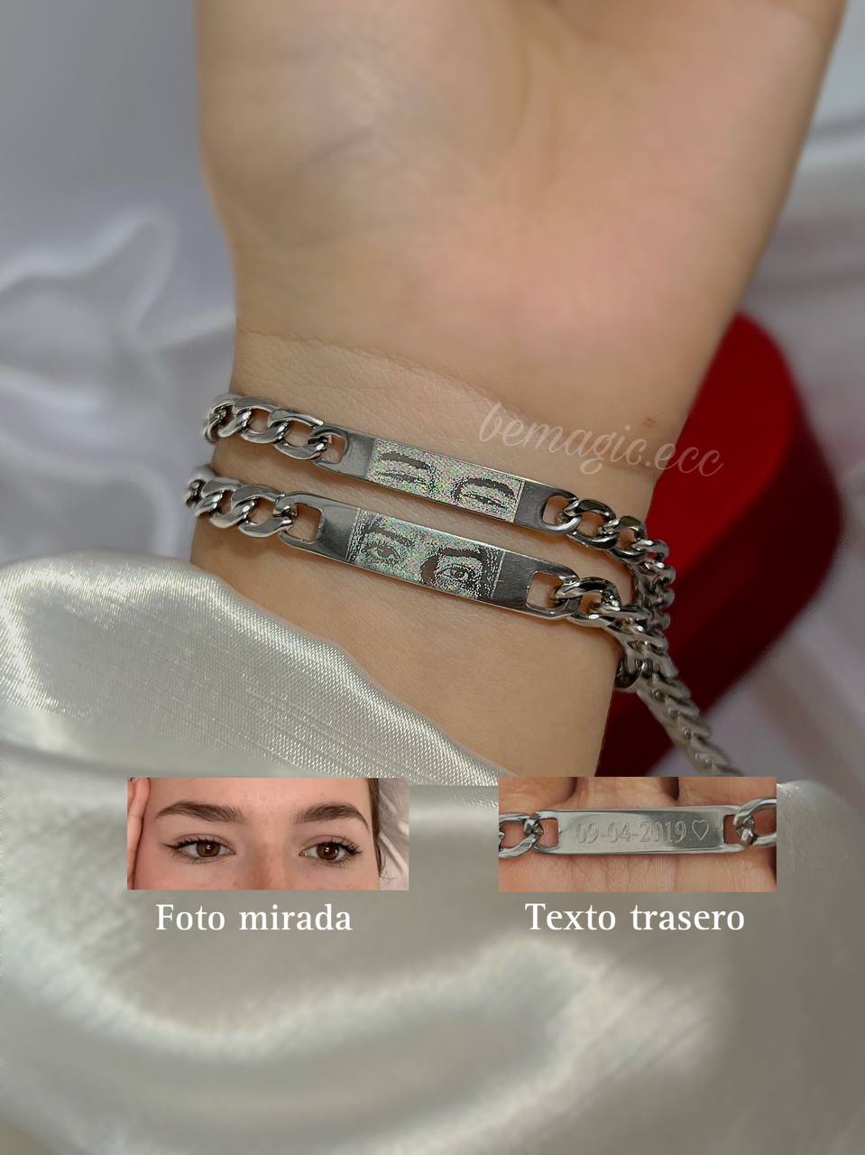 Pulseras de acero inoxidable, no se pelan ni se oxidan.