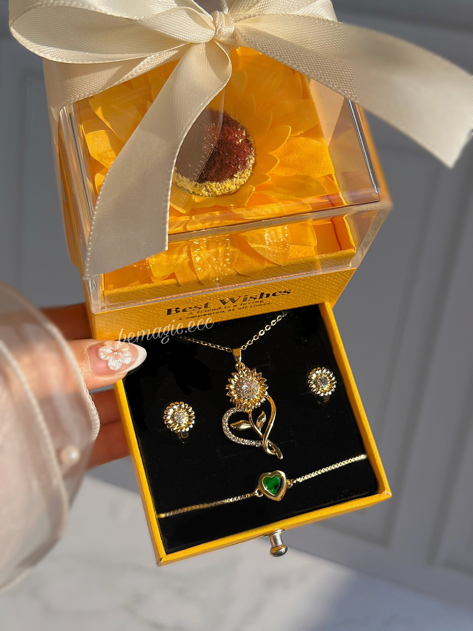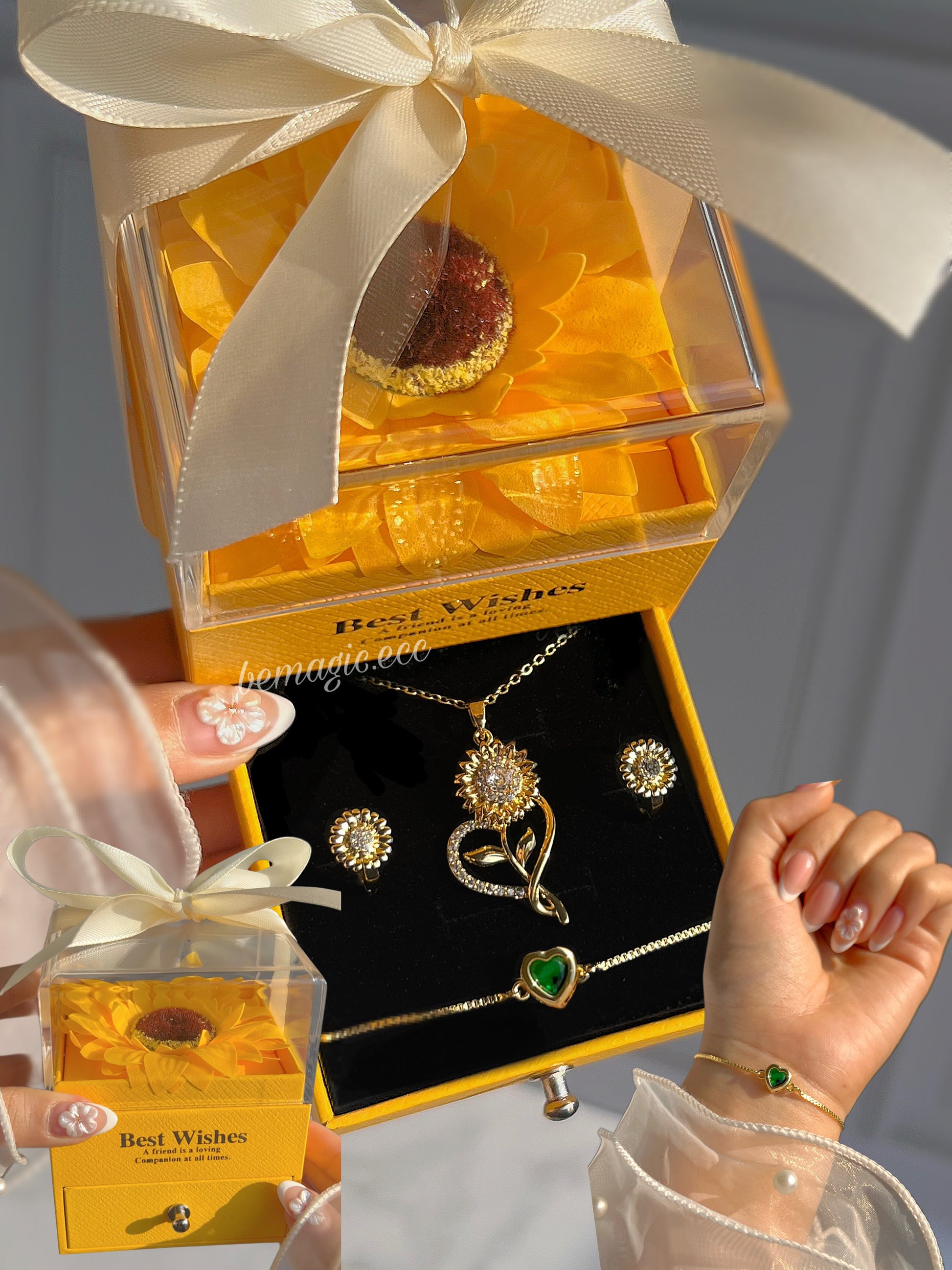 Cadena y brazalete de girasol giratorio en acero inoxidable con un baño de oro golfied 18k 🌻