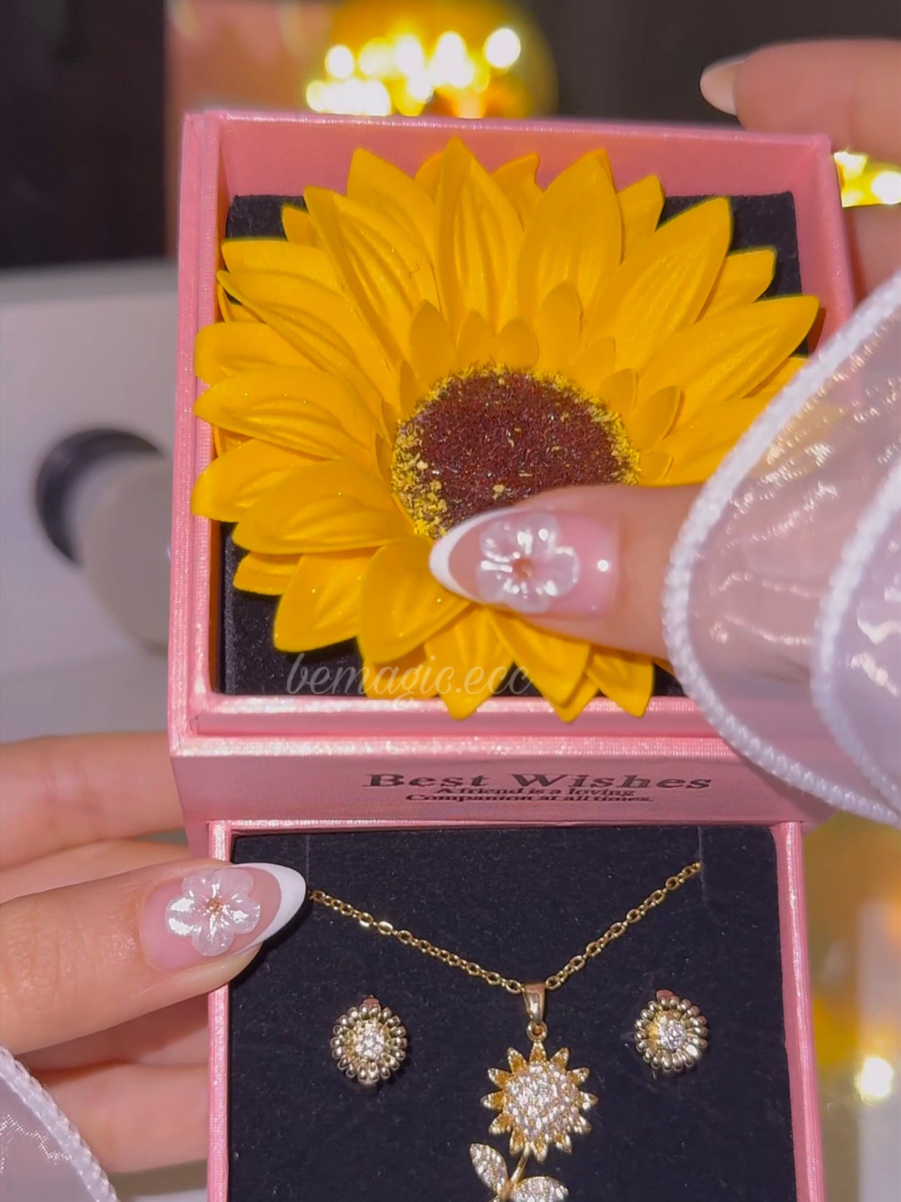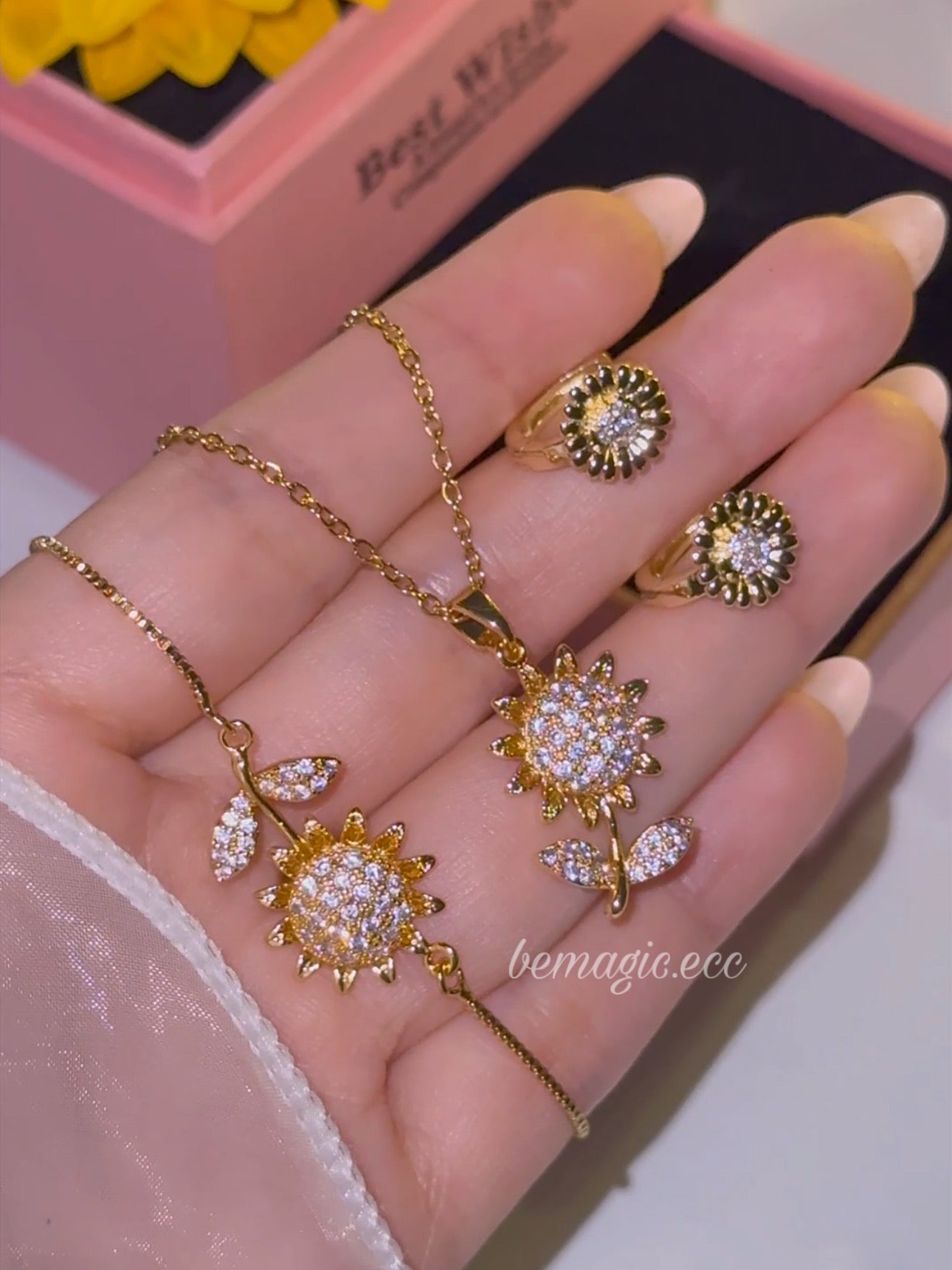 •Incluye aretes en argollas de girasol con microcirconia y baño de oro g18k