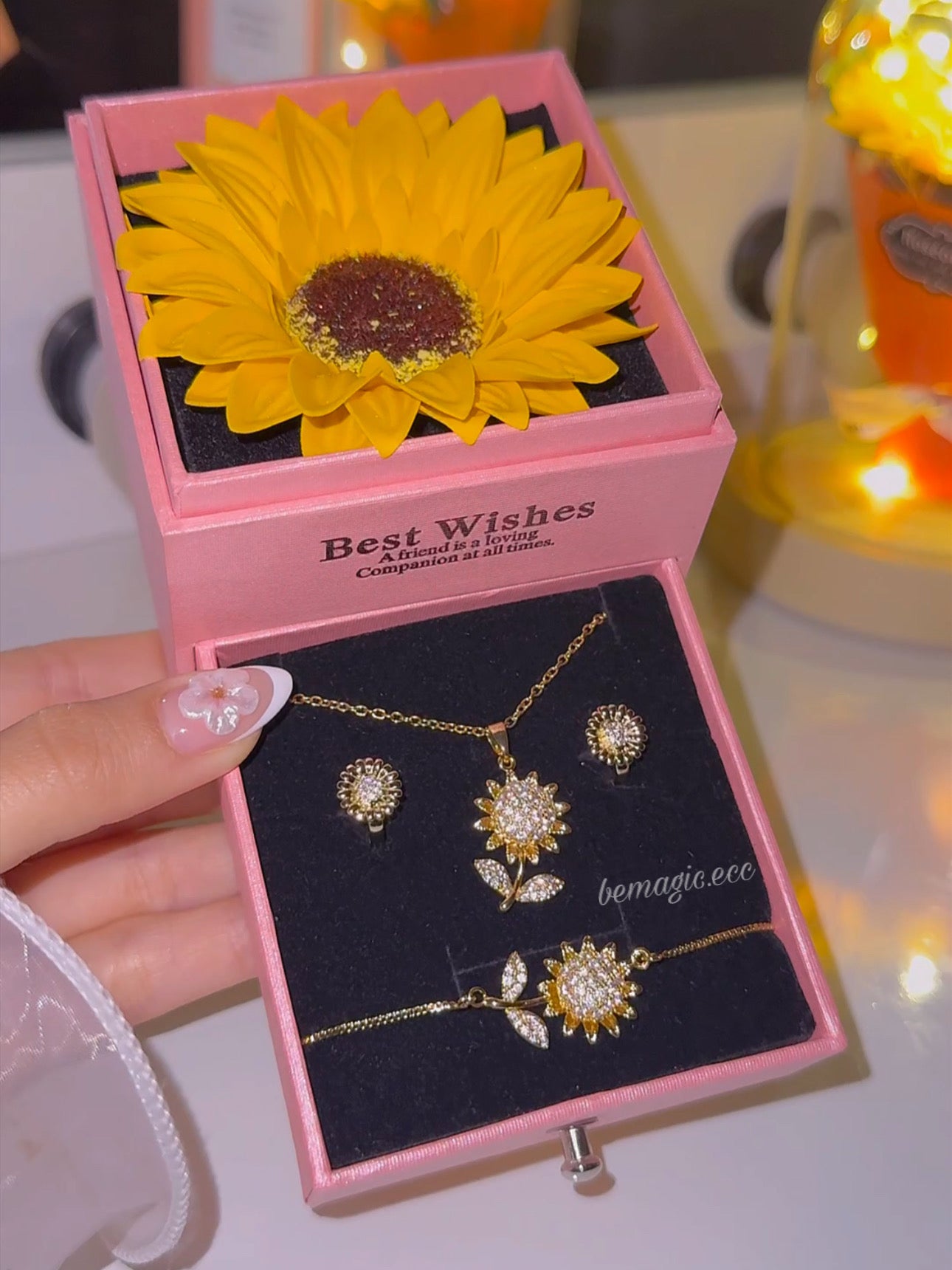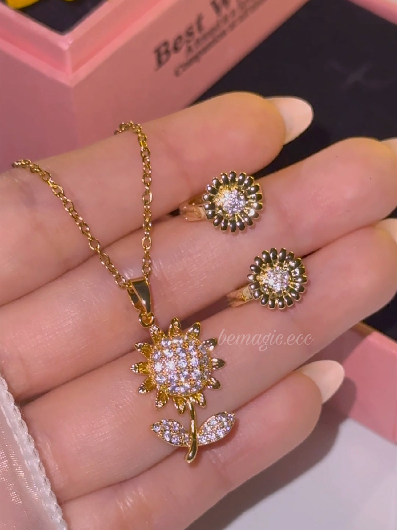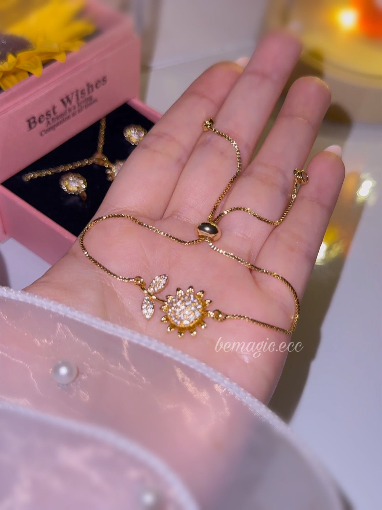 Cadena y brazalete de girasol giratorio en acero inoxidable con un baño de oro golfied 18k 🌻