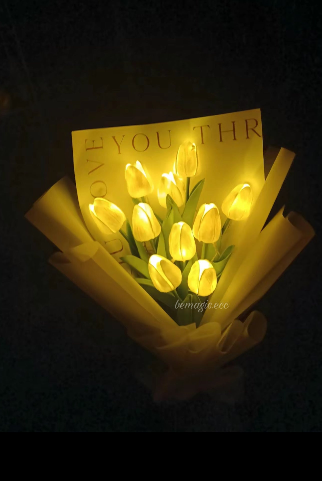 Ramo de tulipanes eternos con luces 🌼💛🌷